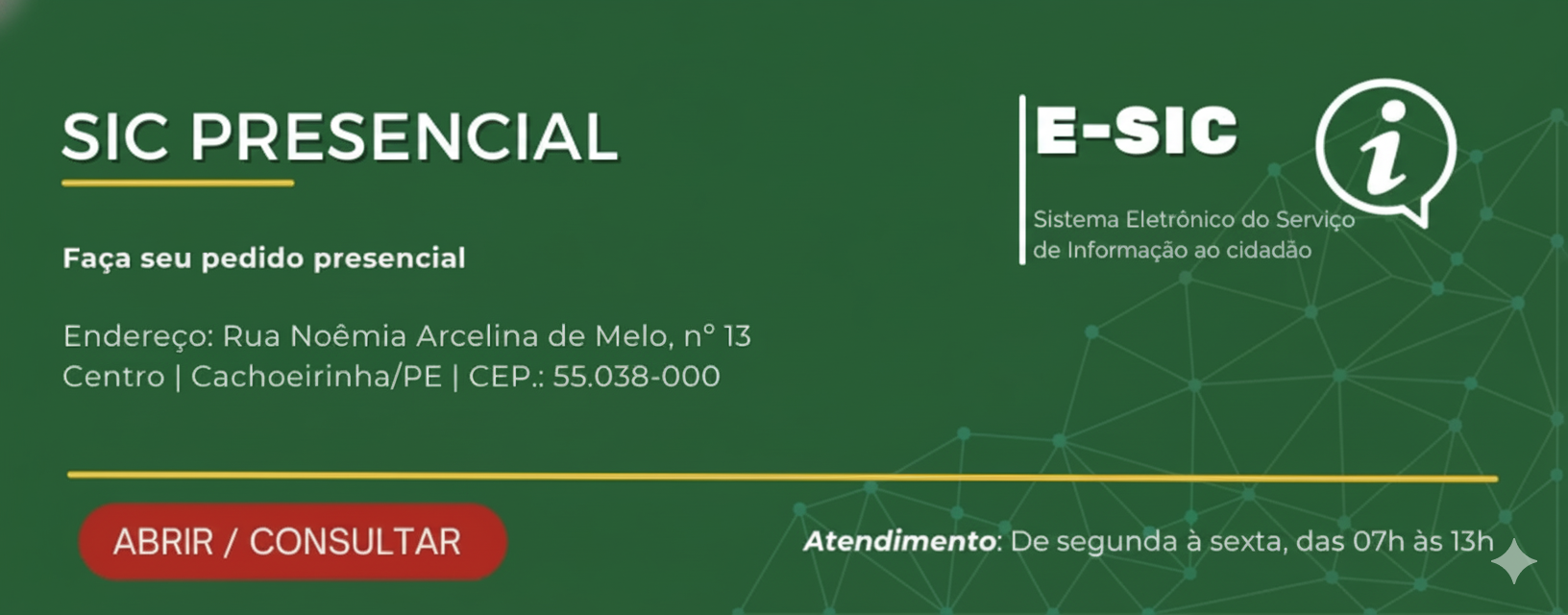 Caso você queira solicitar informações que não se encontram disponíveis nesta Página, acesse a Entidade e clique no item de menu e-SIC, para acessar o Sistema de Acesso ao Serviço Municipal de Informação ao Cidadão.